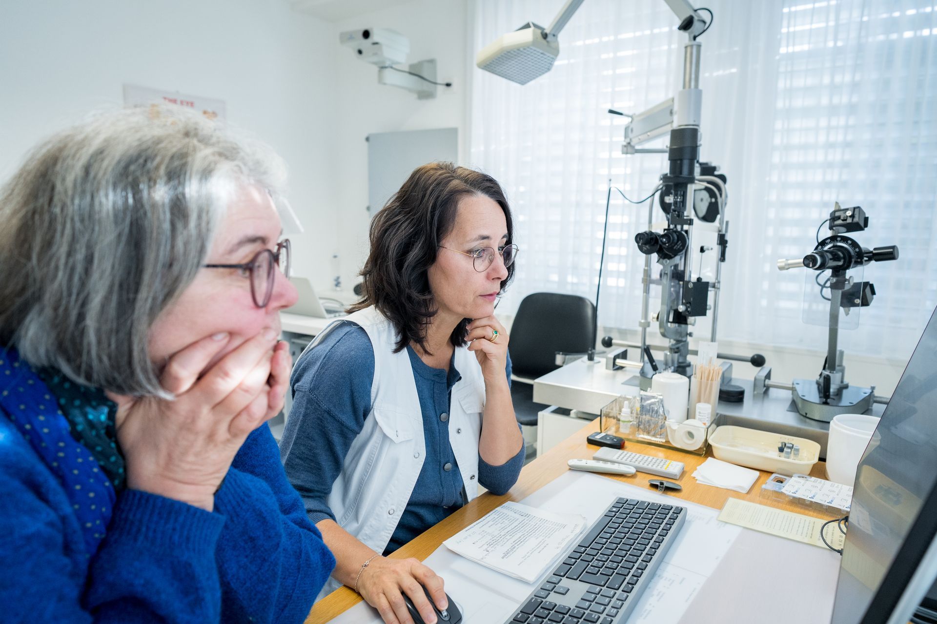 Für unsere kleinen Patient:innen sowie für Patient:innen mit Doppelbildern oder Schielerkrankungen steht uns zweimal wöchentlich unsere Orthoptistin, Frau Nicole Brügger, zur Verfügung. Dabei werden Kinder auf ein verstecktes Schielen sowie auf eine altersentsprechende Sehentwicklung untersucht. Anschliessend erfolgt in der Regel eine Pupillenerweiterung mittels Augentropfen, denn nur bei erweiterter Pupille kann die objektive Brechkraft der Augen zuverlässig bestimmt werden.